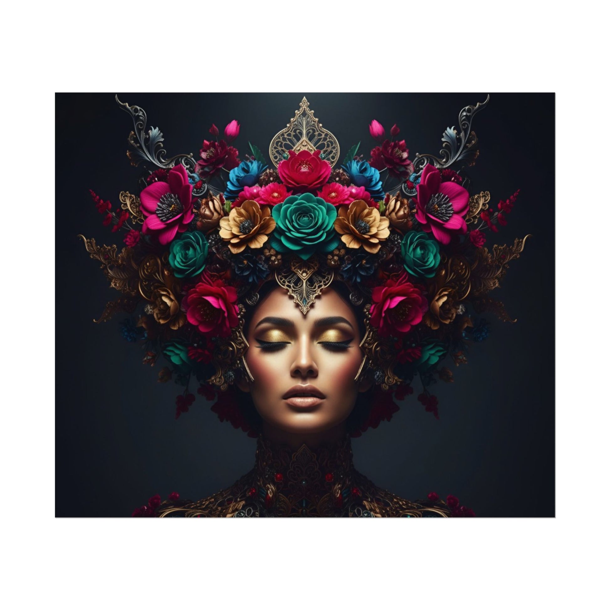 Floral Goddess Art Poster — Matte Textured Watercolor Wall Print
